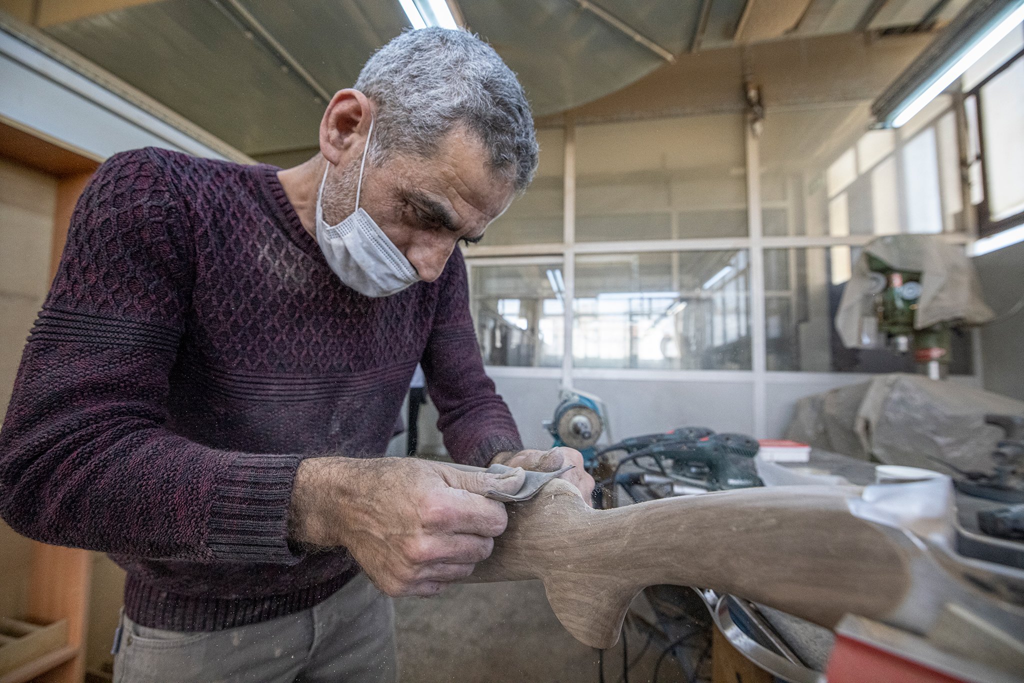 Popping out a side door, our factory host Abdussamed led us to the wood side of the complex, where trucks were unloading a fresh shipment of walnut stock blanks just in from suppliers in the north and east of the country.